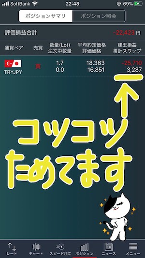 こちらのメイン口座はリラ円が0円になっても破綻しないように、リスク管理を徹底しています。