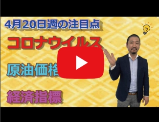 今週コロナウイルスの影響は当然なんですけど、コロナウイルスの中でも今週は経済見通しっていうところに注目したいなと思っています。週後半ですね、木曜日と金曜日、G20の中銀総裁財務相会合が予定されています。金・土・日の3日間でIMF、あとは世界銀行の会合が行われると。どちらも経済見通しが発表されるのではないかなと思っています。特にコロナウイルスの影響で、どういった経済見通しが発表されるのかというのが注目です。あとは新規失業保険申請件数。先週、先々週も大きく増えた申請件数なんですが、今週も発表されると。この3週間の結果、あとは来週の結果が来月の雇用、アメリカの雇用統計に影響するのではないかなと思って見ています。