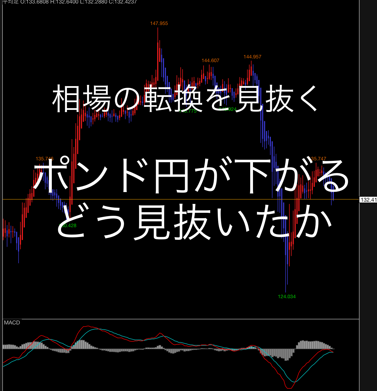 No.40 MACD 平均足 価格転換点 相場の折り返し、転換点を見抜く。ポンド円が下がるとどうやって見破ったか