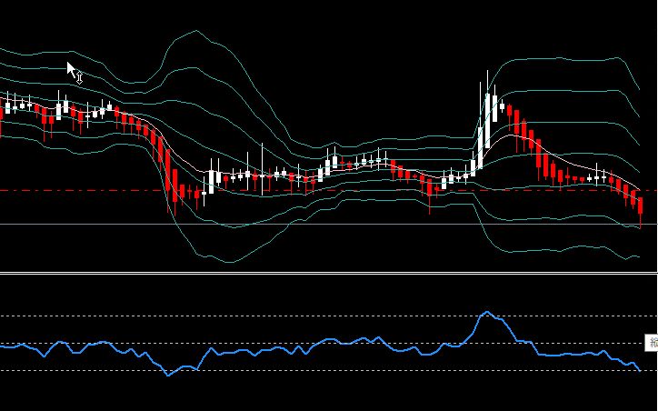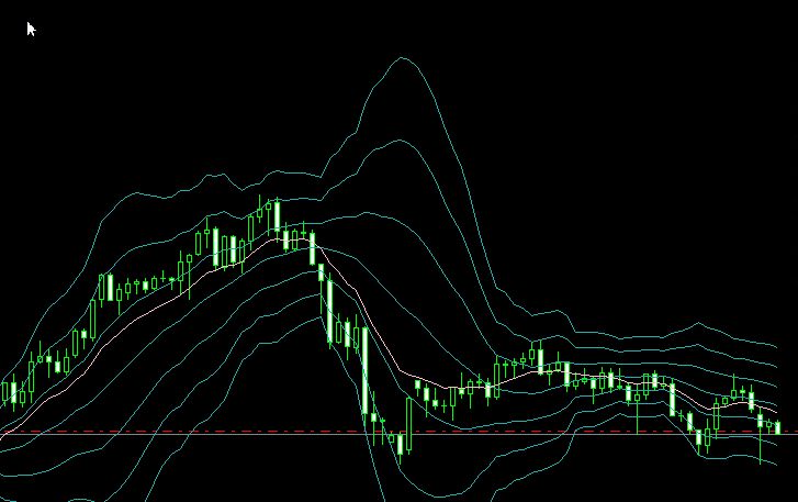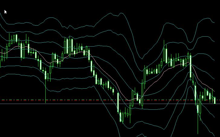 私はミドルバンドが傾くかどうか微妙な段階で早めにエントリーしたのですがこの場合少なくともピンクの移動平均までは戻しを待つべきですね。その程度も待てないのではどうしようもありません。