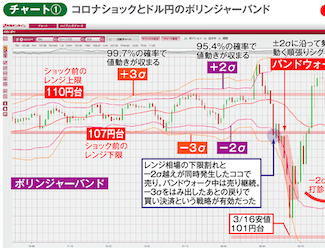 外為オンライン・佐藤正和の実戦取引術|3大通貨の未来を予測するテクノ&ファンダ分析【今月のテーマ|「ボリンジャーバンド」で見るコロナショックの衝撃と為替変動率】