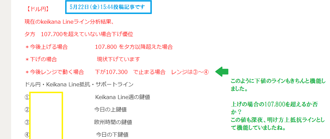 *深夜と明け方付けた 107.650付近 夕方鍵値と上げる場合の鍵値のラインが機能!