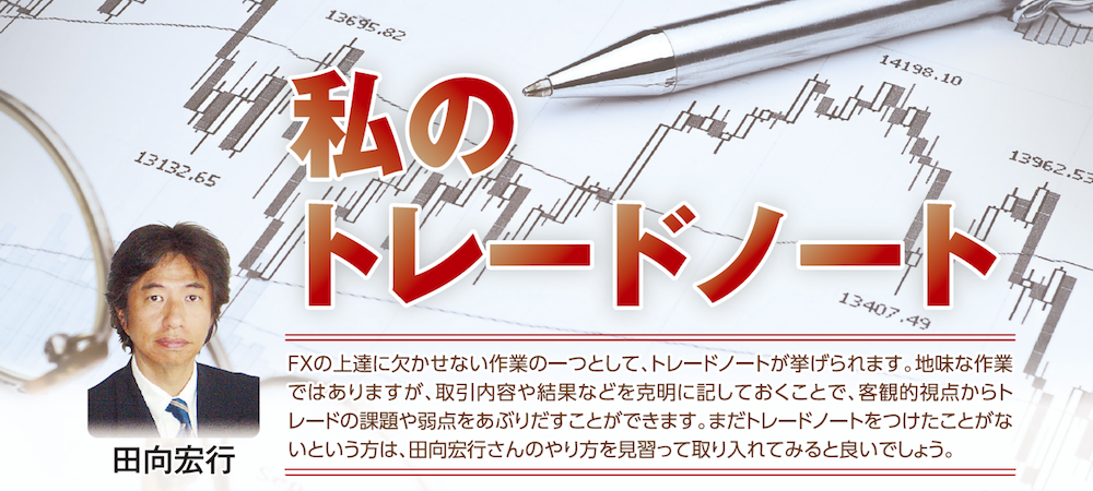 FXの上達に欠かせない作業の一つとして、トレードノートが挙げられます。地味な作業ではありますが、取引内容や結果などを克明に記しておくことで、客観的視点からトレードの課題や弱点をあぶりだすことができます。まだトレードノートをつけたことがないという方は、田向宏行さんのやり方を見習って取り入れてみると良いでしょう。