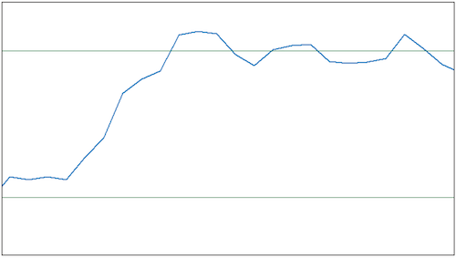 例えばRSIなら、設定期間内の上昇幅の割合を表示するものですから、上の方に張りついた状態から下がってきたら、上昇の力もそろそろ弱まってきたかな、という判断ができます。