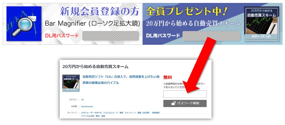 真壁さんの『20万円から始める自動売買スキーム』のパスワードが付与されています。