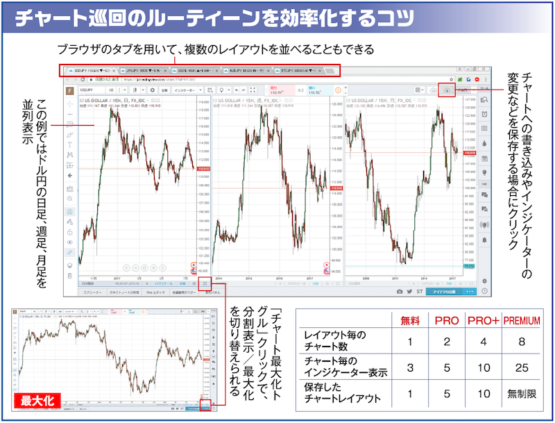 佐々木 一つのモニターであっても、ブラウザのタブを複数使うことで、チャート巡回の利便性が向上するでしょう。なお、料金プラン別の機能は時々変更されることがありますので、その点に留意してください。