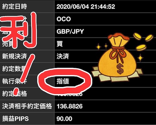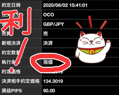 - 利益確定と損切りは、OCO決め打ち