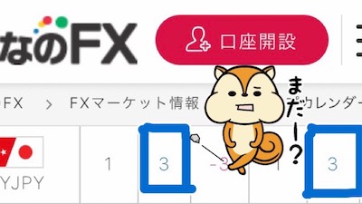 含み損を抱えている買いポジション達がプラスに転換する可能性が出てきて、なおかつ買いスワップポイントが増える可能性も高いので、このまま待ってみます。