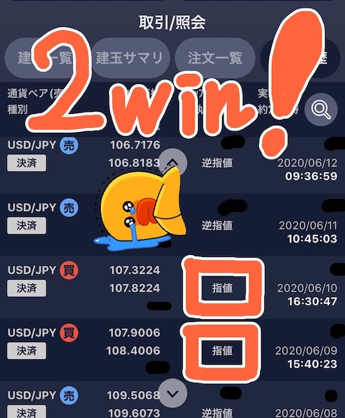 6月9日と6月10日に2連勝。リスクリワードレシオが5のトレードなので、この2連勝は大きいです。