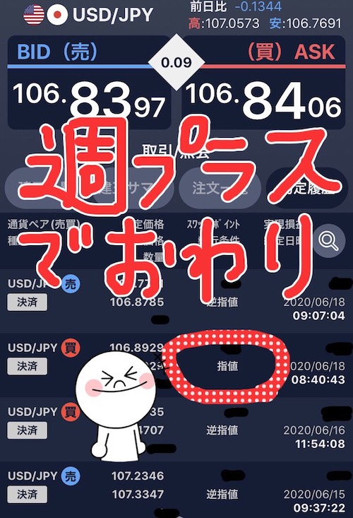 先週1勝3敗、1ポジション翌週に持ち越し。