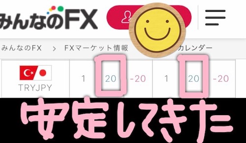 みんなのFXのトルコリラ円買いスワップが20円まで戻り、安定感を取り戻しつつあります。