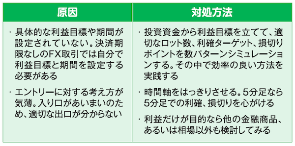 この手の相談をされるのはポジション保有中の方が多いです。期待されている回答は「今保有しているのをどうしたら良いのか」「利益が出る可能性は全くないのか」「我慢していれば大丈夫なのか」です。簡単にいえば「今を何とかしたい」です。しかしこれではポジションを持つたびに同じことを繰り返してしまいます。