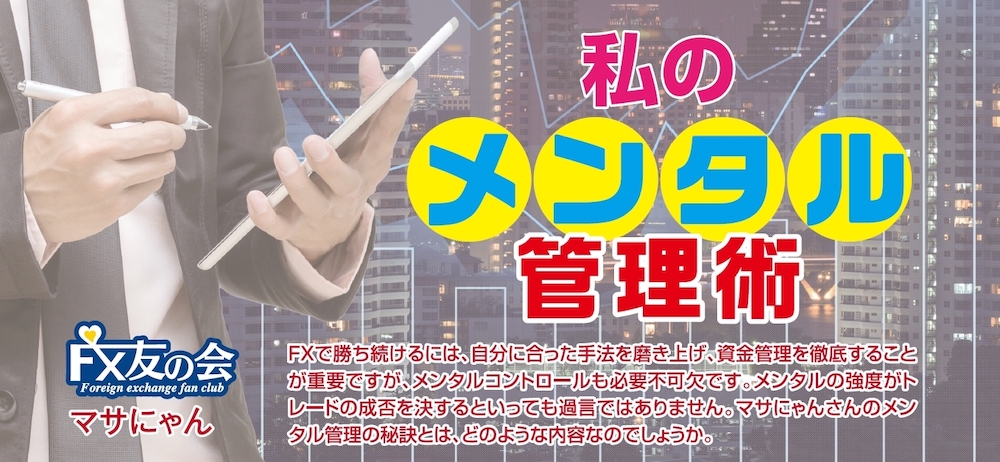 FXで勝ち続けるには、自分に合った手法を磨き上げ、資金管理を徹底することが重要ですが、メンタルコントロールも必要不可欠です。メンタルの強度がトレードの成否を決するといっても過言ではありません。マサにゃんさんのメンタル管理の秘訣とは、どのような内容なのでしょうか。
