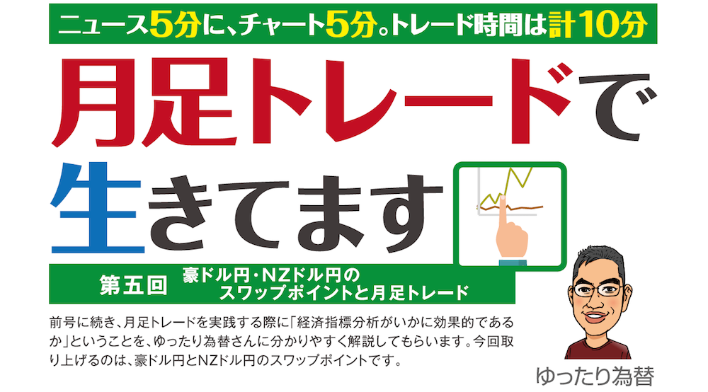 前号に続き、月足トレードを実践する際に「経済指標分析がいかに効果的であるか」ということを、ゆったり為替さんに分かりやすく解説してもらいます。今回取り上げるのは、豪ドル円とNZドル円のスワップポイントです。