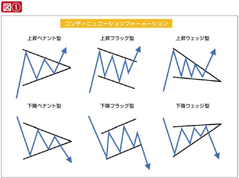 前号では、リバーサルフォーメーションの代表格ともいえるダブルフォーメーションについて学びました。それに続き、今回はペナント、フラッグ、ウェッジといったコンティニュエーションについて解説していきます。