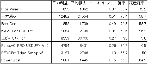 代表的な長期フォワード実績のあるEAを、バルサラの破産確率表にあてはめてみました。