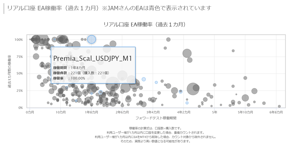 証拠金の増加スピードが速いEAで、221人ものお客様の何某かに貢献できている。ご期待に応えられている。ということは、投資コンテンツ提供事業者としての事業者冥利に尽きるという感想を持っておりますが、開発者の JAM も益々開発に身を入れられるのではないかと思っております。