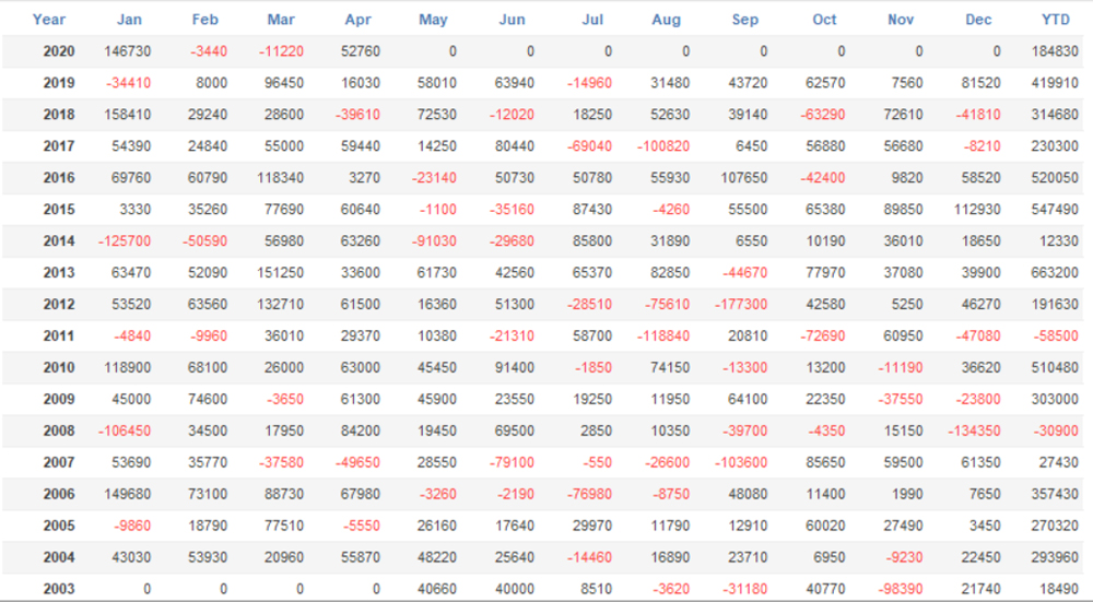 2008年、2011年を除き年間トータルで勝ちとなっています。