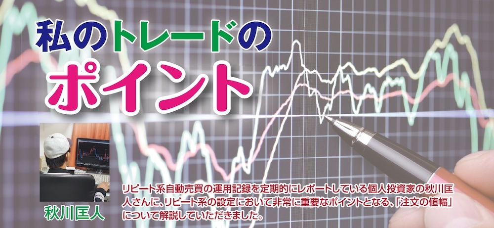 リピート系自動売買の運用記録を定期的にレポートしている個人投資家の秋川匡人さんに、リピート系の設定において非常に重要なポイントとなる、「注文の値幅」について解説していただきました。