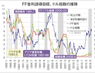 チャート①の連動性を見ても分かるように、ドル円の値動きを考えるときは米国の10年国債がどう動くか、すなわち米国の景気が良くなるか悪くなるか、より直接的には米国債の需給関係がどうなるかを考える必要があるのです。