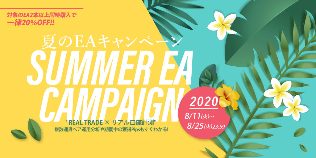 キャンペーン期間中、対象のEAを2本以上同時に購入いただくと一律20%OFFとなります。