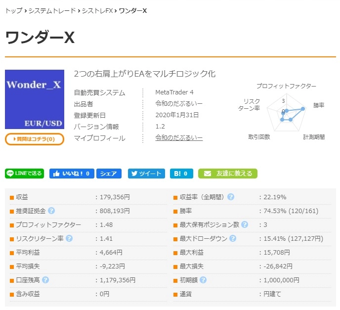 2つの右肩上がりEAをマルチロジック化。「ワンダーX」