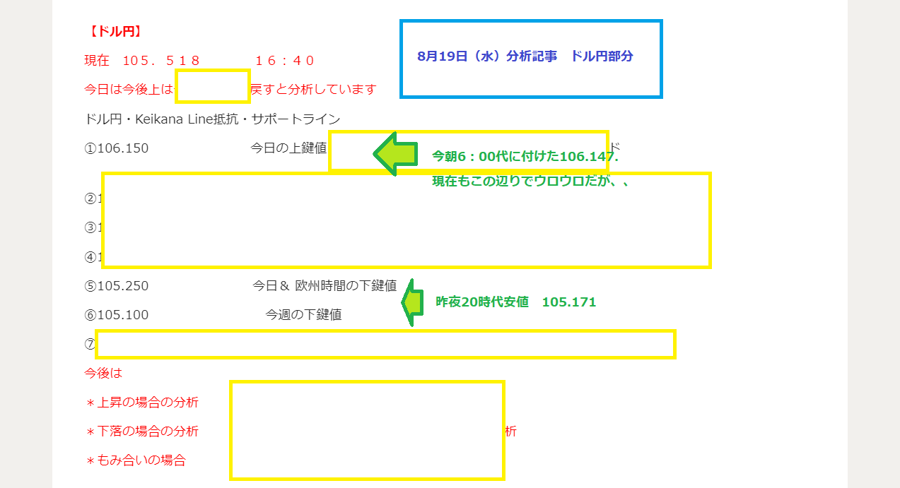 8月20日 ドル円昨日分析高値①106.150 に届いたので、今日は日本時間分析です。&ポンド円