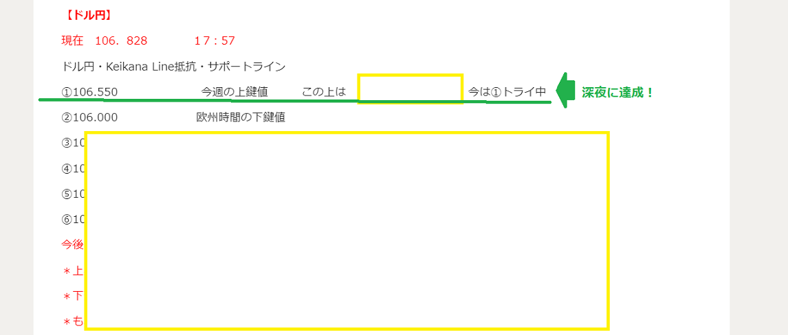 *頭は、①の今週の鍵値 106.576 ほぼピッタリ!でおり返しています。