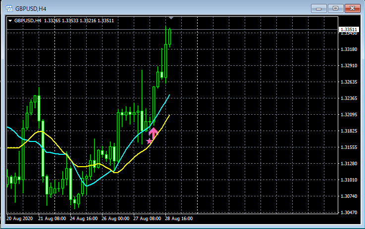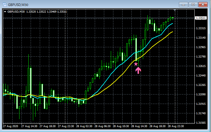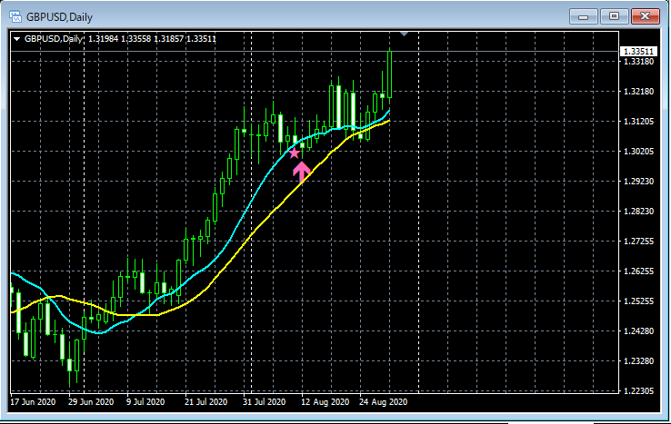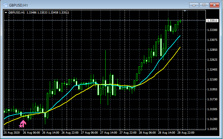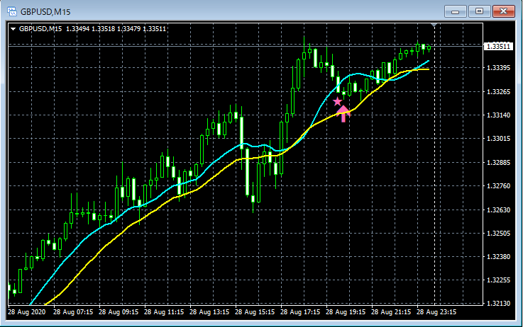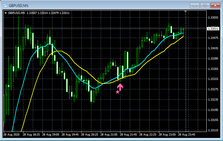mBDSRのサイン(フィルター:移動平均線2本),移動平均線2本