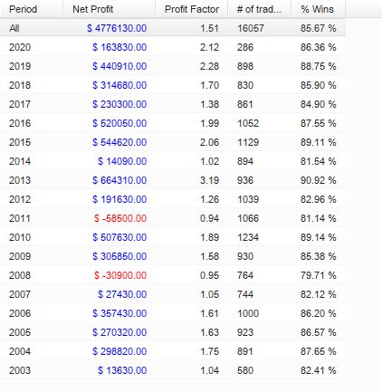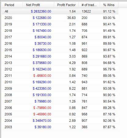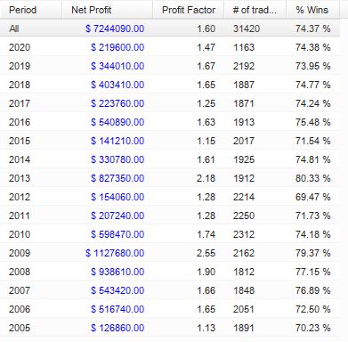 同じ朝スキャ複数ポジションのEAですが、年毎のパフォーマンスには違いがあることがわかりました。