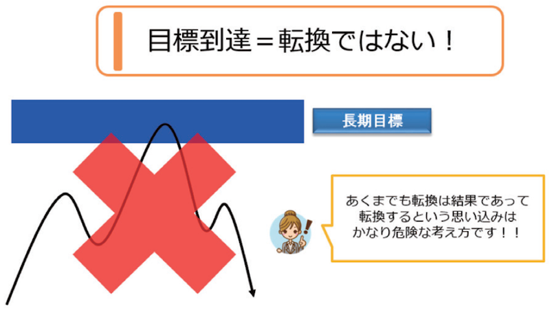 目標到達の状態はまさにそのリスクが大きい状態です。まずはここからどの状態に移行していくのかを確認して、その後にしっかりと戦略を立てることで無駄なトレードを減らすことにつながります。
