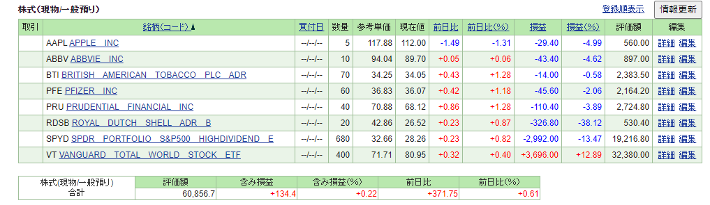 確定損失や配当との累計損益では、$5,600のマイナスとなっています。