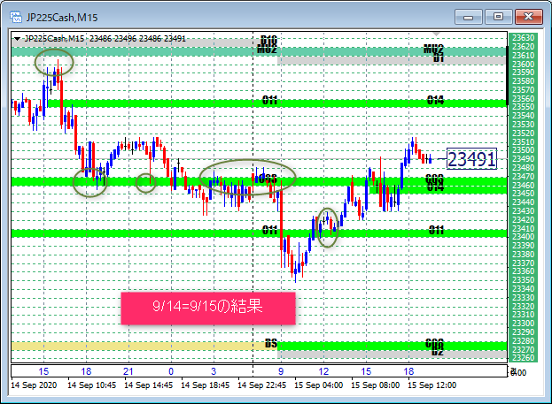 直ぐに下抜けするも続落とならず、11時頃からキーポイントゾーンへ買い戻し。