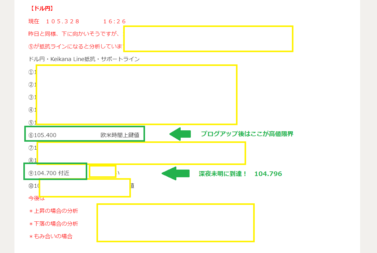 分析値⑨104.700 ! 今日は下抜けて⑩に向かうでしょうか?