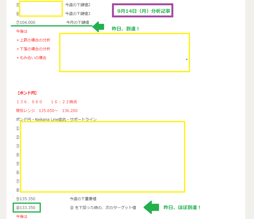 9月22日 分析下値まで到達!記事無料公開!下落は更に続くのか?下値候補