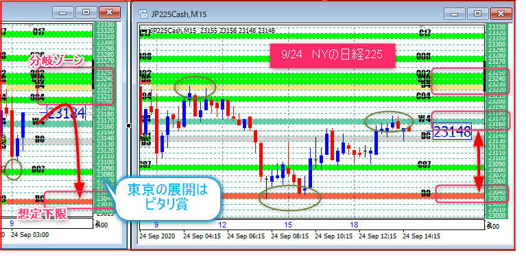 【日経225】9/24東京の展開と<サポ・レジ>はパーフェクトでした。