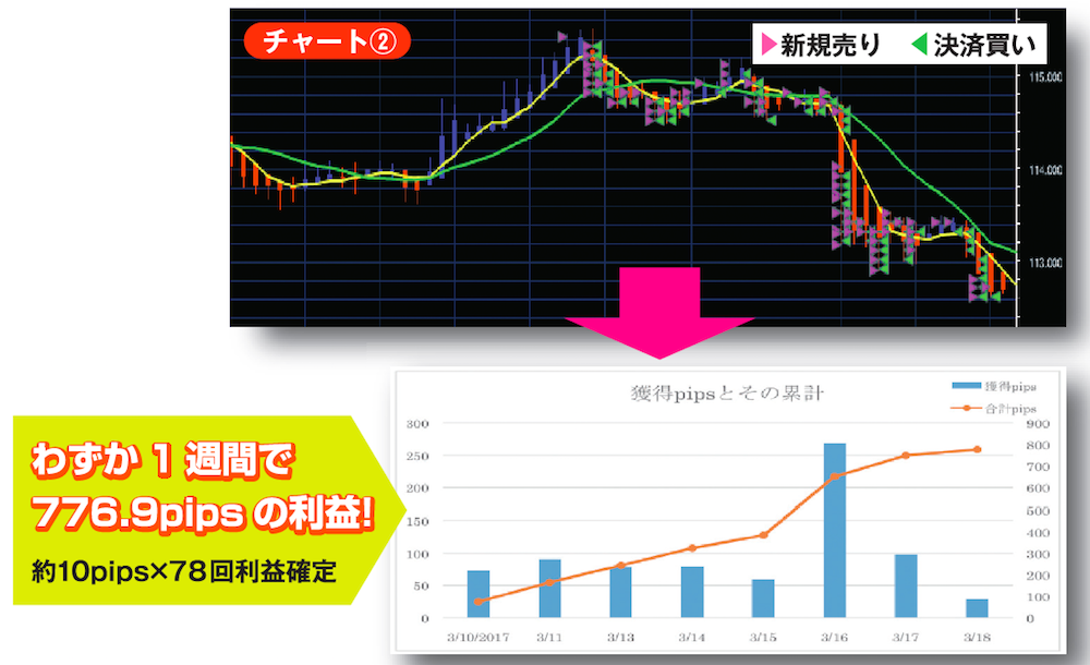 今回は、複数のテクニカル分析を組み合わせて相場を予想し、トラッキングトレードを使って1週間ほどで合計776.9pipsの利益を出すことができました。ドルは2円ほど変動したので、本来であれば200pipsほどのところ、実に3倍以上の利益です。