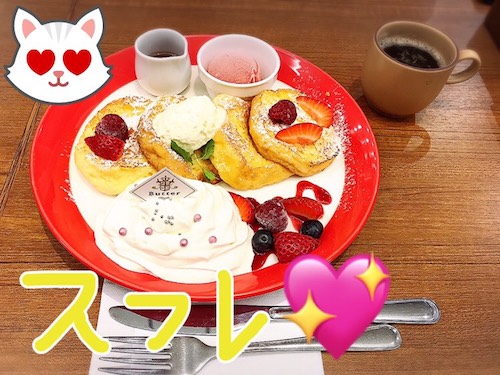 すっと食べたかったフワフワスフレ。フルーツトッピングのスフレが好きなので大満足でした。ごちそうさまでした。
