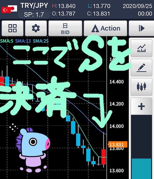 9月15日から持っていた売りを利食いました。そのときのチャートです。