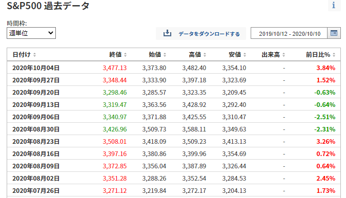 <S&P500指数終値・最高値3580(20200902)>