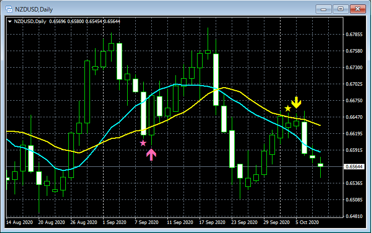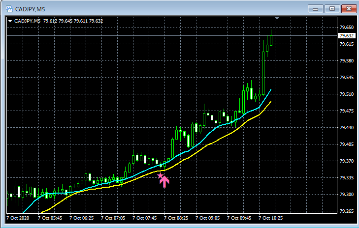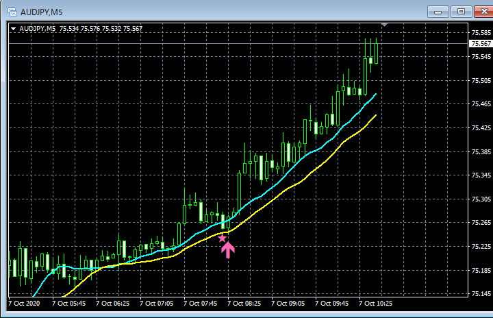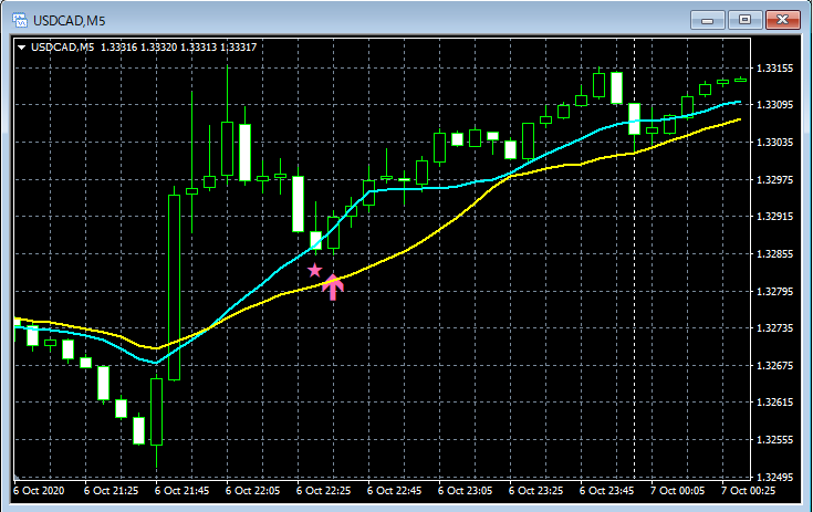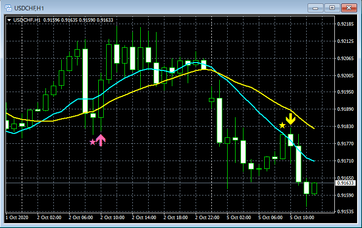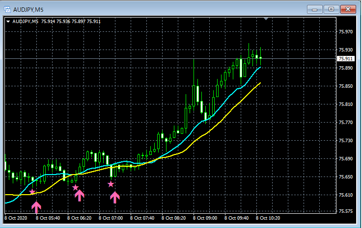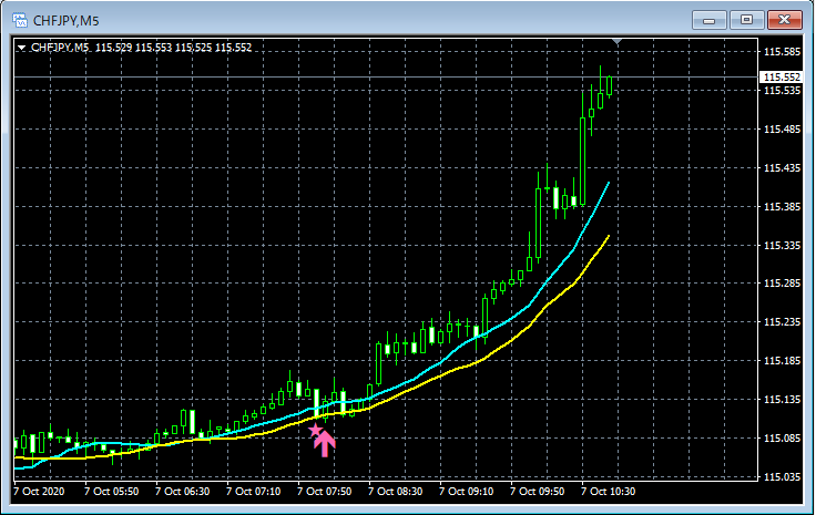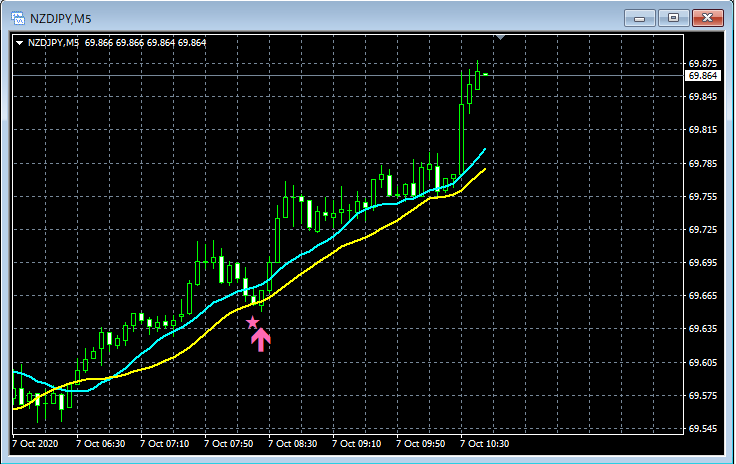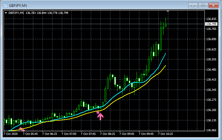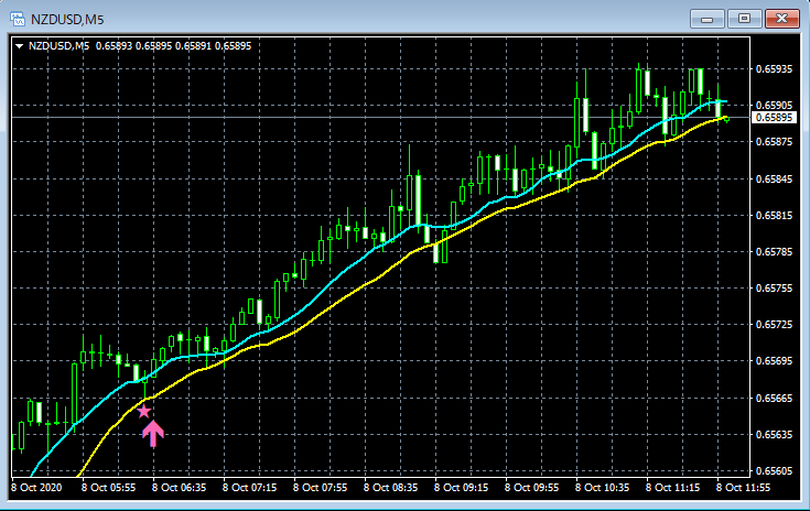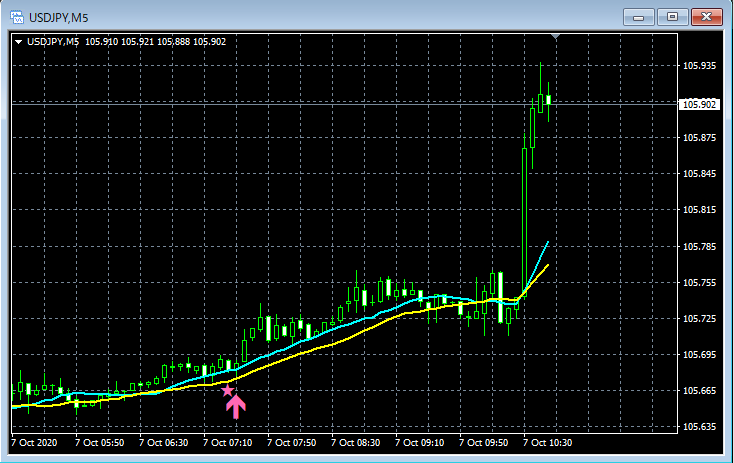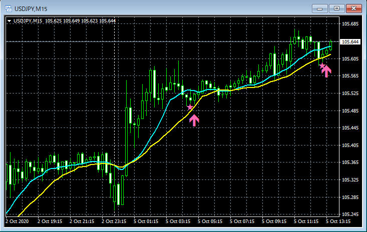 mBDSR(移動平均線フィルターバージョン)のサインの例 2020/10/5~10/9