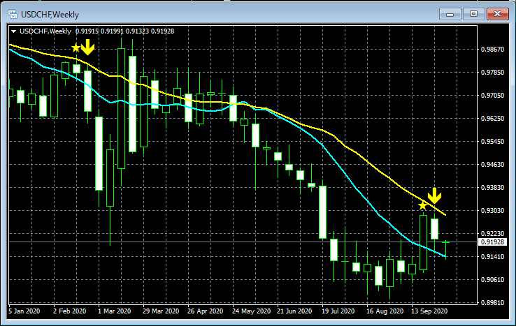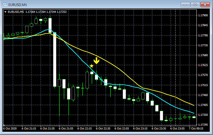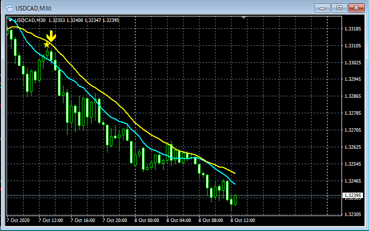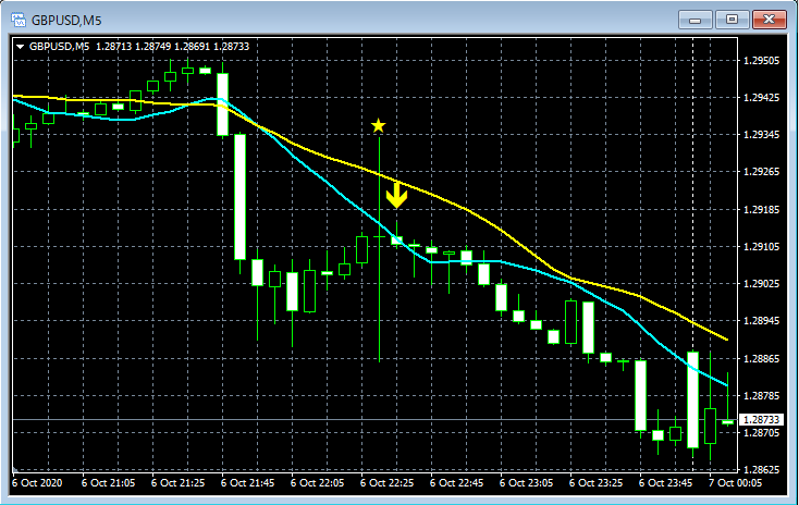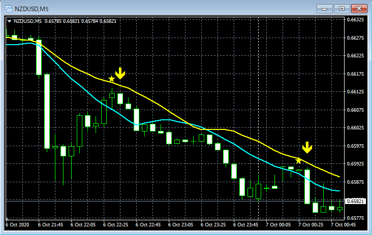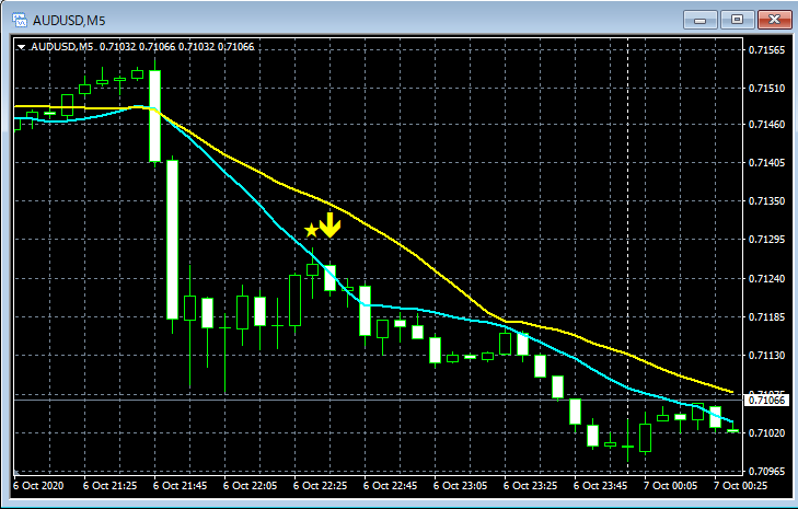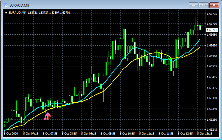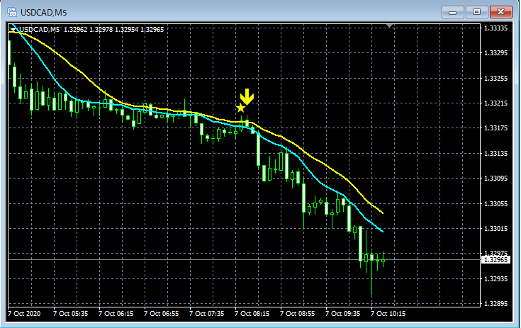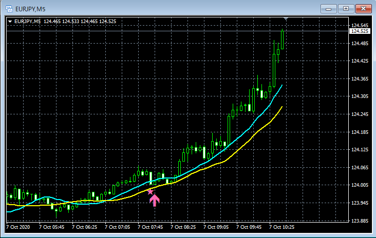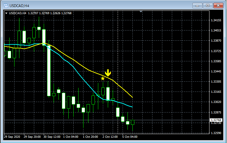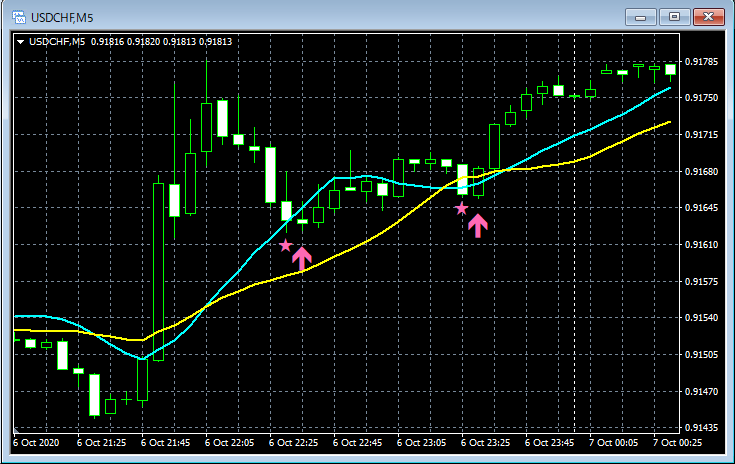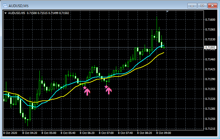 mBDSR(移動平均線フィルターバージョン)のサインの例 2020/10/5~10/9