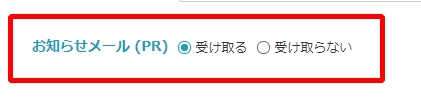 お知らせメール(PR) 「受け取る」にチェックを入れてください。