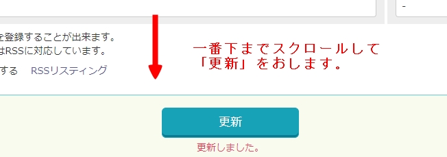 その後、ページの最下部までスクロールし、「更新」ボタンを押して完了です。