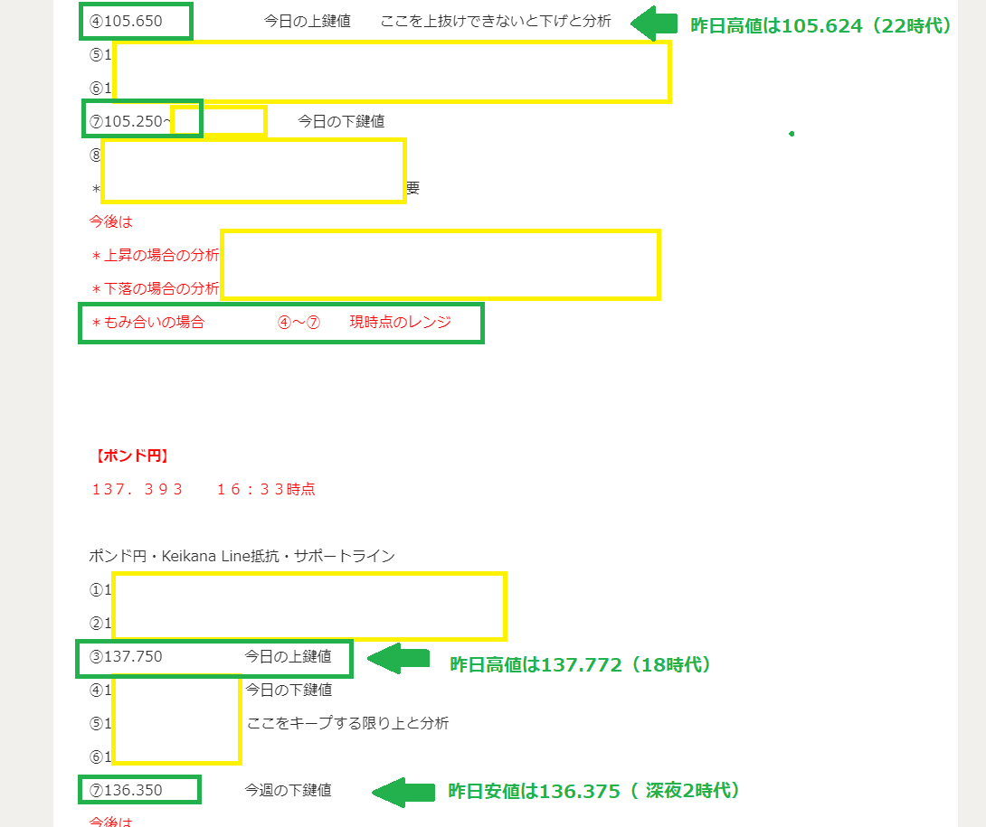 *ポンド円は、昨日時点(今朝まで)では、分析安値いっぱいの⑦までの下落でした。