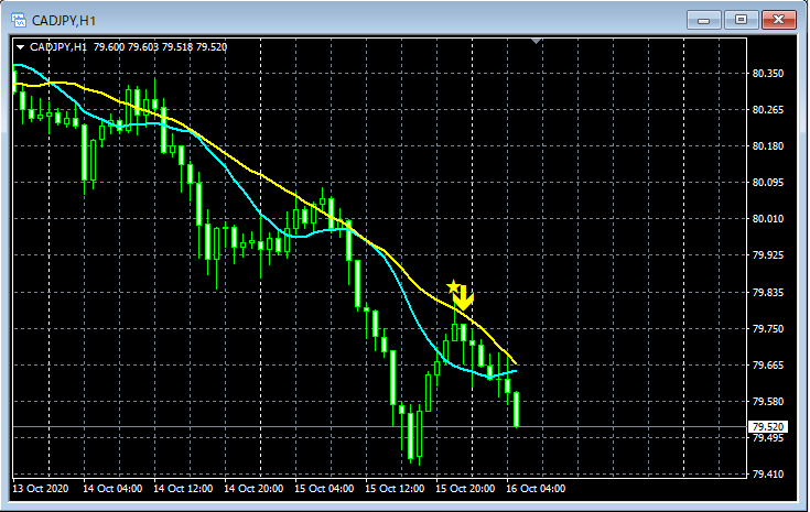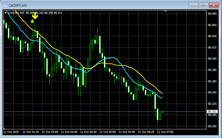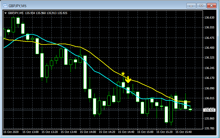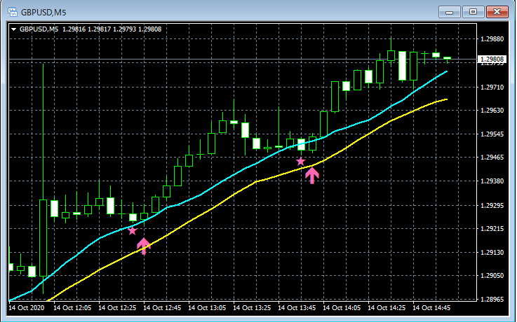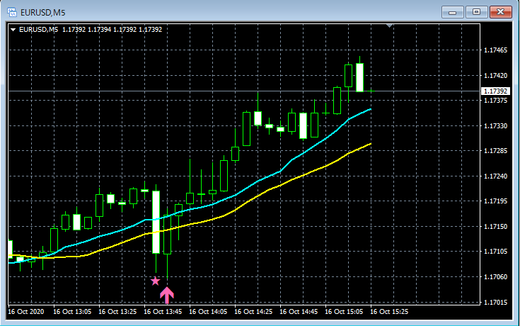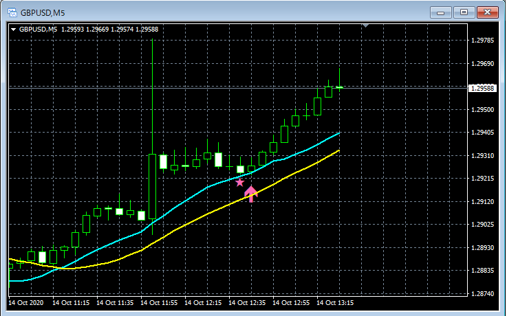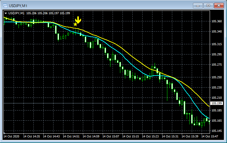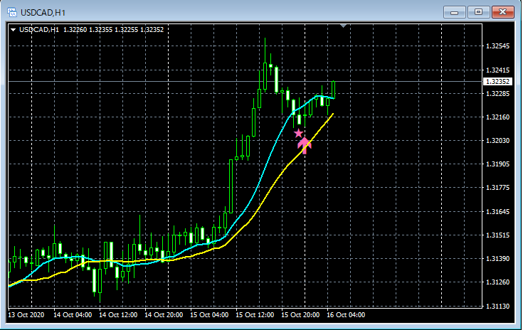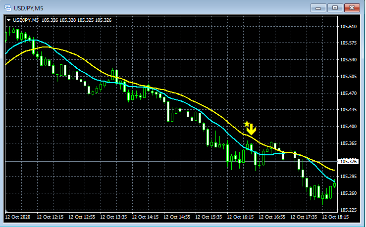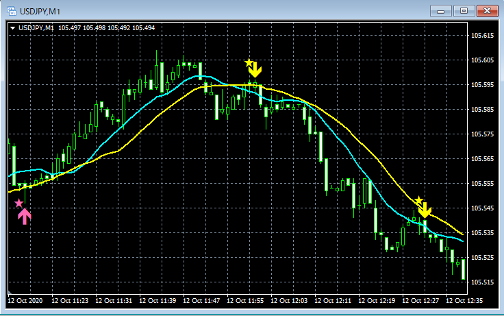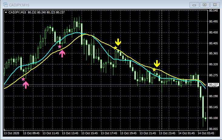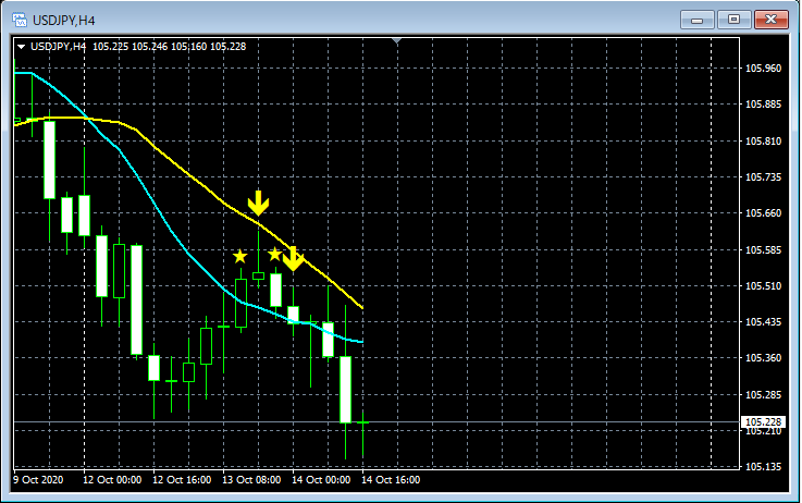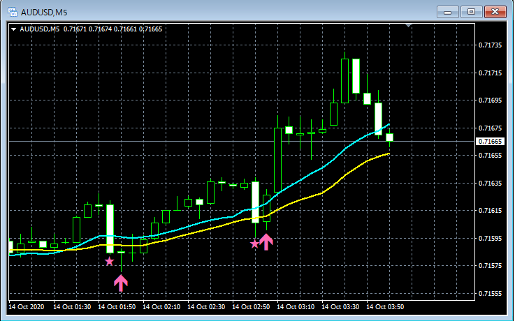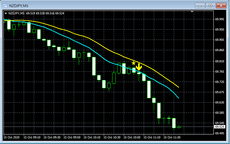 mBDSR(移動平均線フィルターバージョン)のサインの例 2020/10/12~10/16