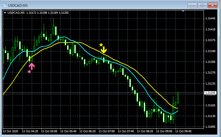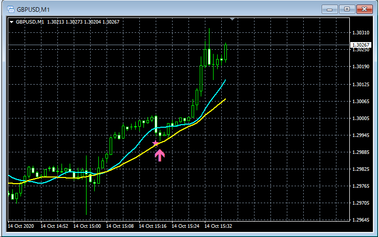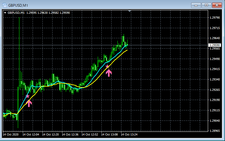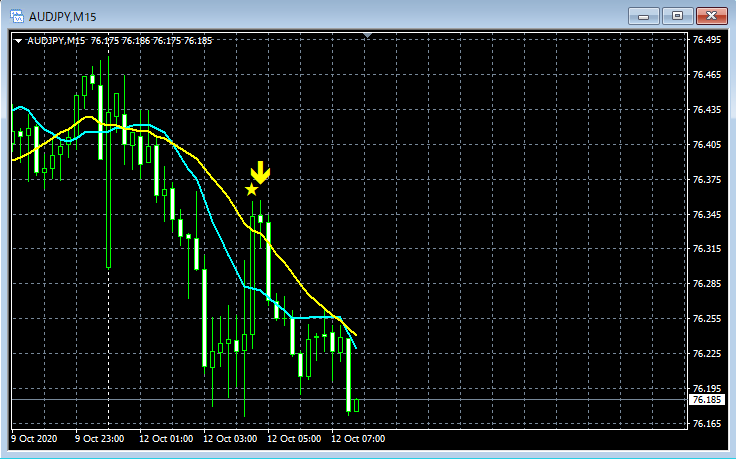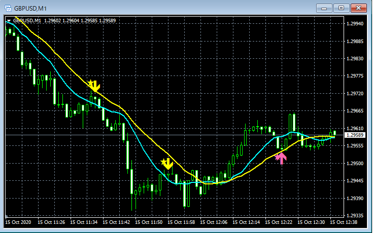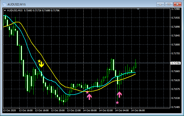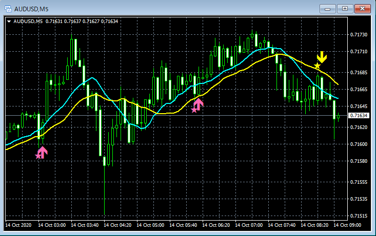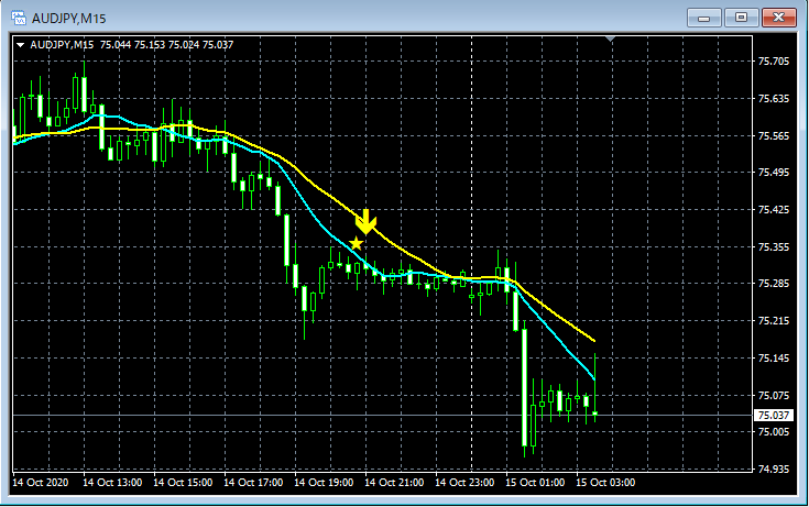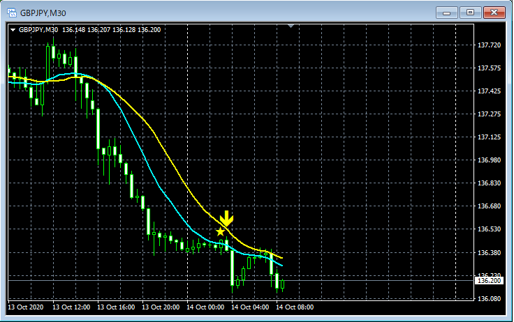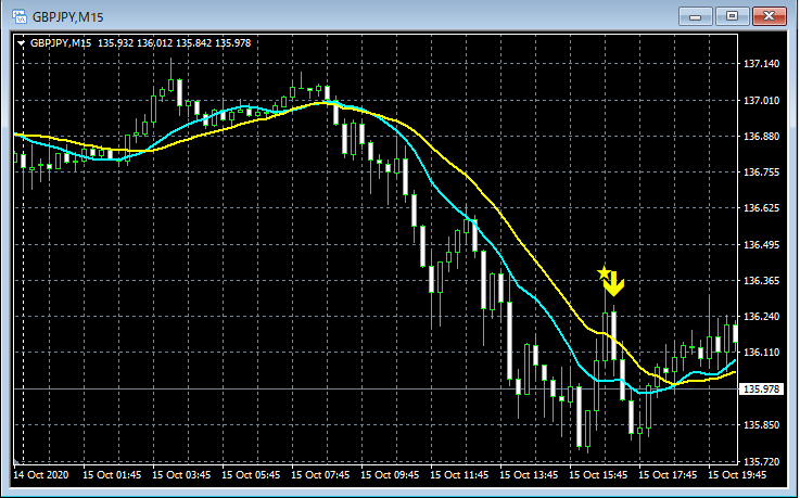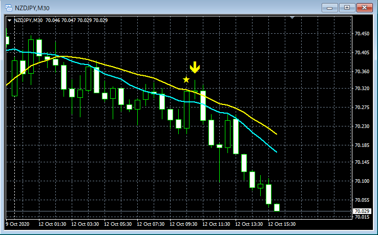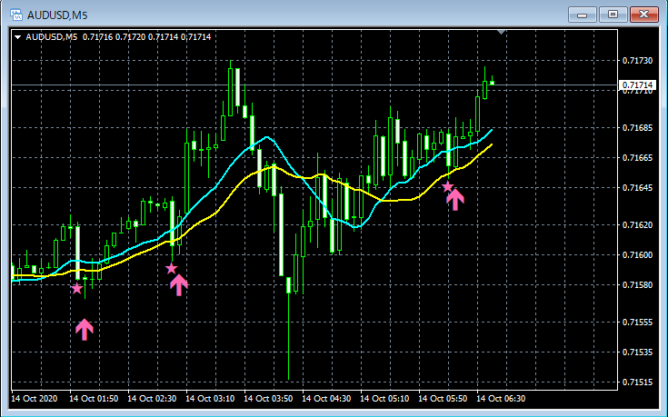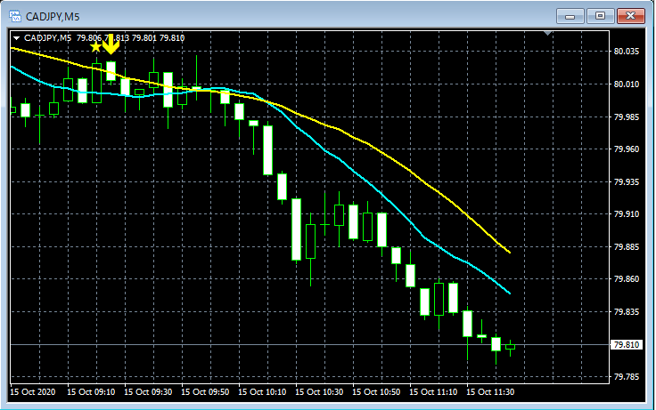 mBDSR(移動平均線フィルターバージョン)のサインの例 2020/10/12~10/16
