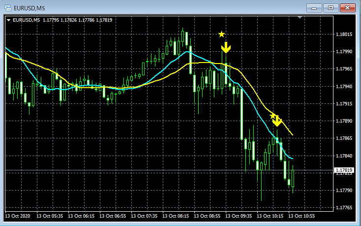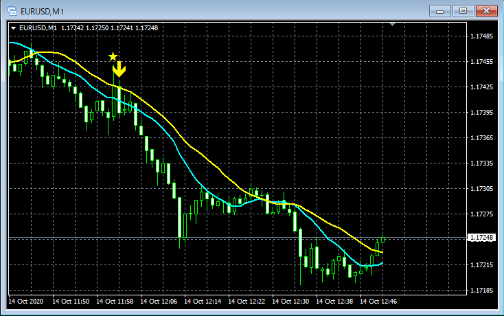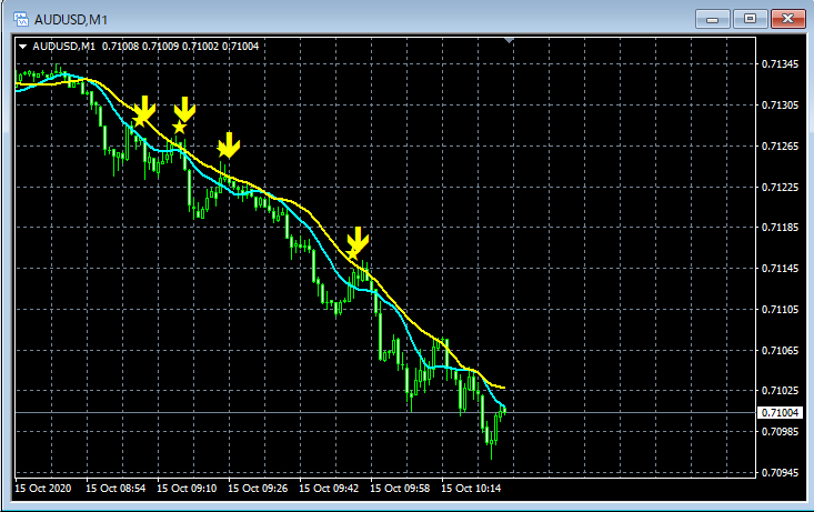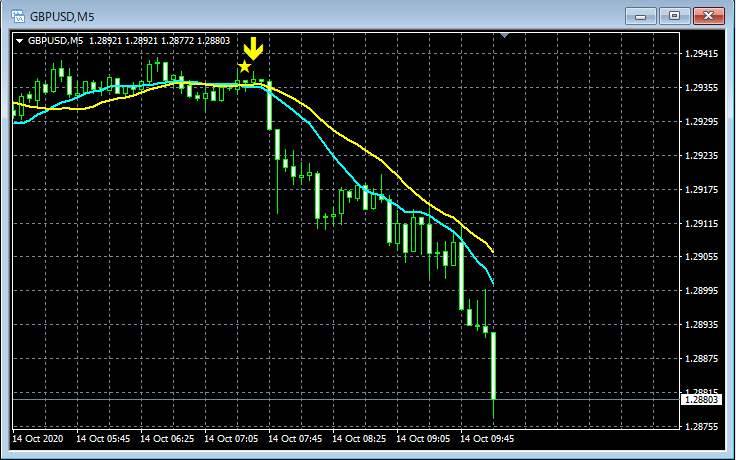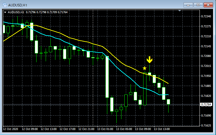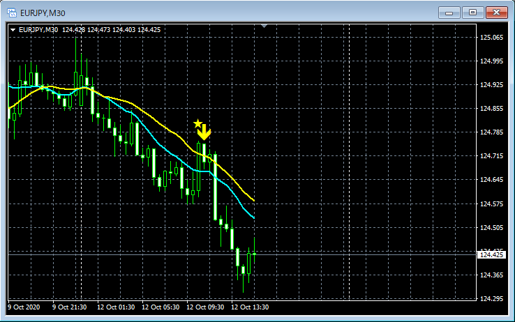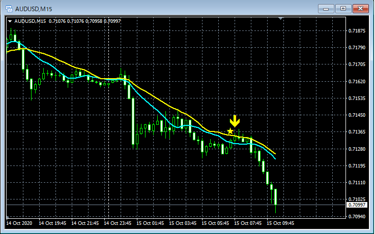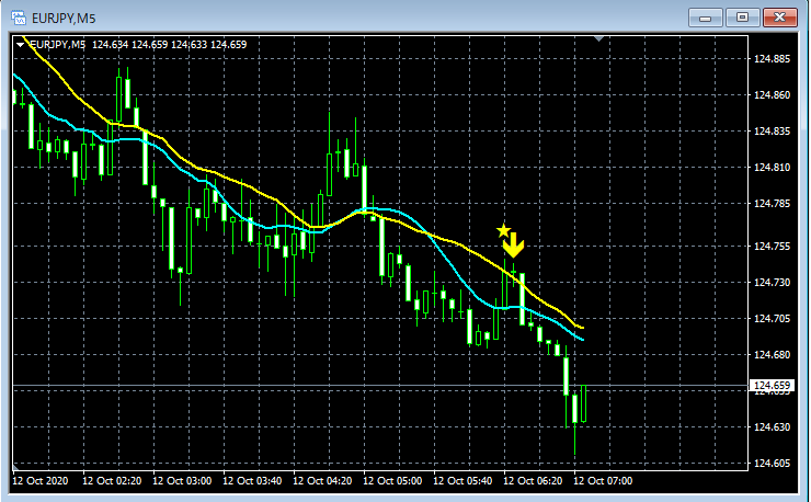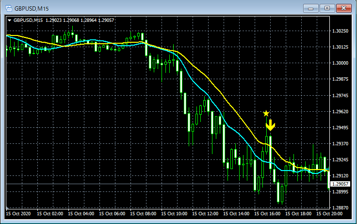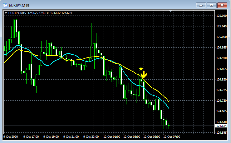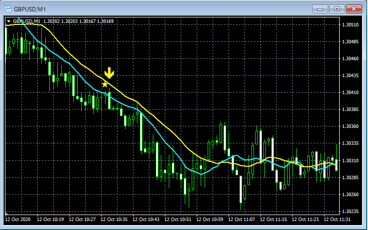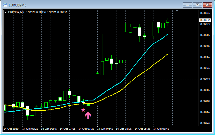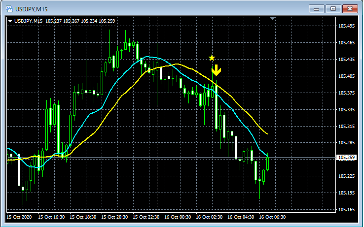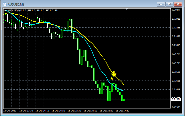 mBDSR(移動平均線フィルターバージョン)のサインの例 2020/10/12~10/16