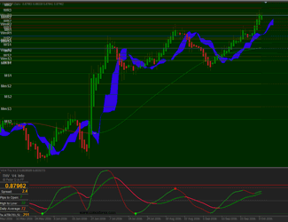 トリックスが同色の赤色でクロス、下降トレンドとなっています。