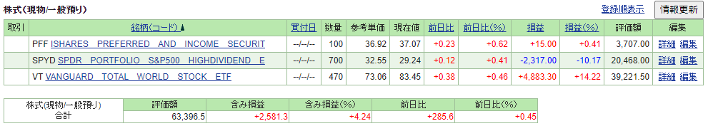 また、PFFが36ドル台に下がっていたため、3回に分けて新規購入しました。